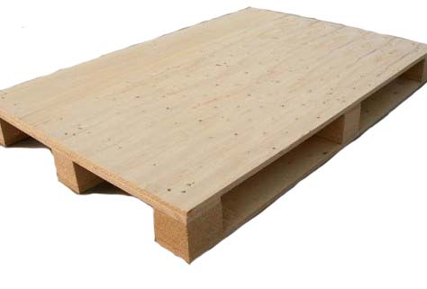 胶合托盘是由木段旋切成单板或由木方刨切成薄木,再用胶粘剂胶合而成的三层或多层的板状材料,通常用奇数层单板,并使相邻层单板的纤维方向互相垂直胶合而成。